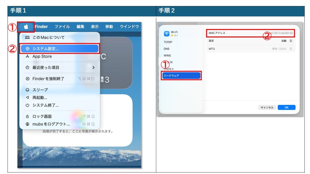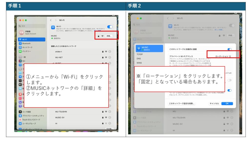 MUSICネットワークを使用する際、Wi-Fiの物理アドレス(MACアドレス)の申請が必要となります。