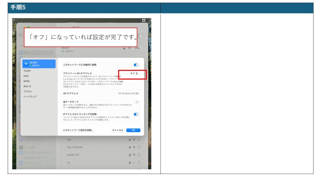 ※プライベートアドレスをオフにする方法はこちらをご確認ください。