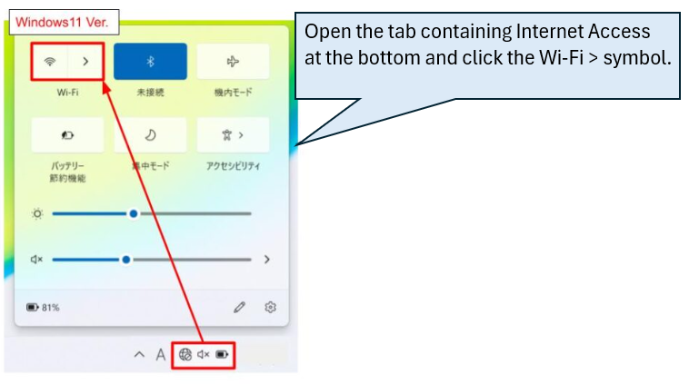 Step 1-1 Click the wireless LAN icon at the bottom right.