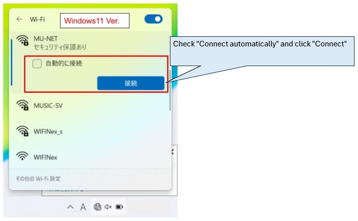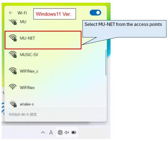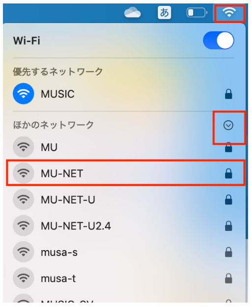 Step 1-1 Click the wireless LAN icon in the upper right corner and select MU-NET.