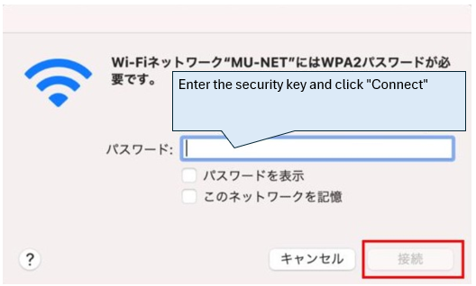 ※MU-NET will be disconnected after 5 minutes if authentication is not used.