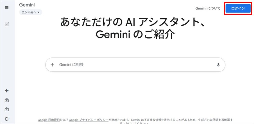 Geminiはブラウザ版とスマホ版(iOS・Android)がありますが、ここではPCでブラウザ版を利用する場合の手順を説明します。