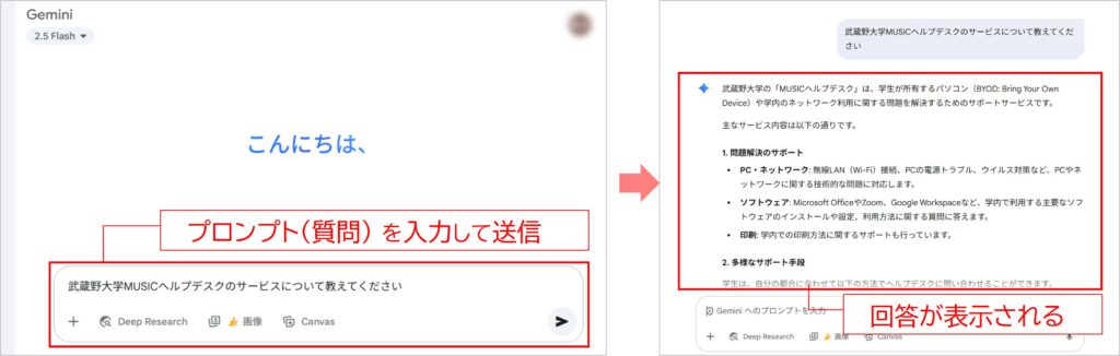 手順2 画像に関してプロンプト(質問)を入力し、Enter または 紙飛行機マークで送信します