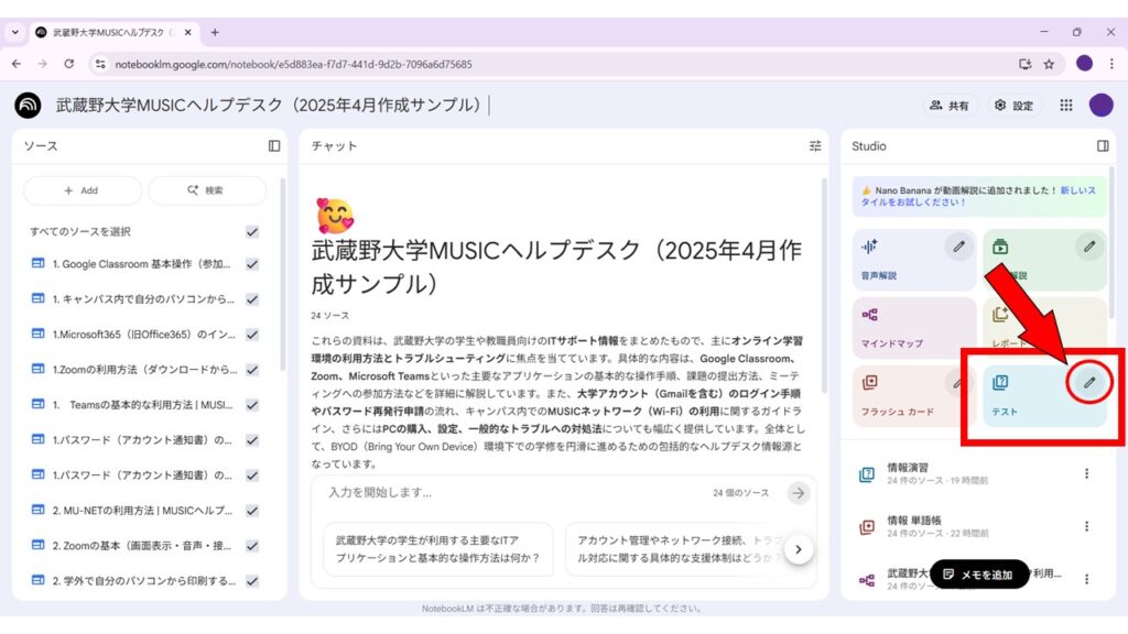 NotebookLMの「テスト」とは?
